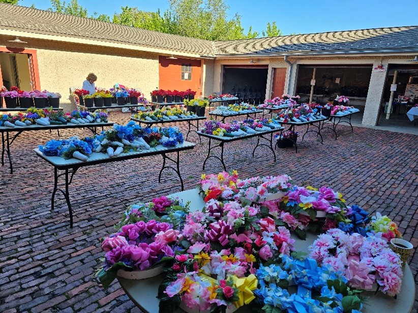 The pickup volunteers are trained in what needs to be picked up and what can stay. We would love to have you volunteer to help us pick up flowers after Memorial Day and then again help clean them in the spring for the annual sale.